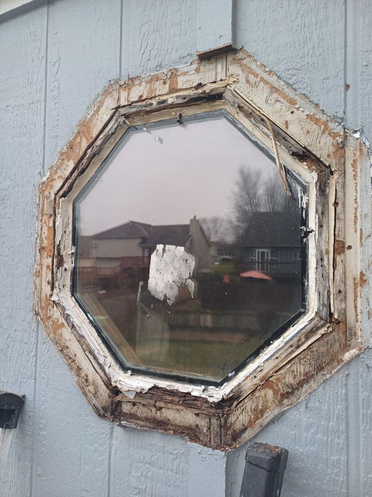 We removed this severely deteriorated octagon window, including the rotten exterior frame and failing sealant, and installed a brand‑new, energy‑efficient unit in its place. The new window is properly flashed, sealed, and trimmed, providing a clean updated look and long‑term protection against moisture and drafts.